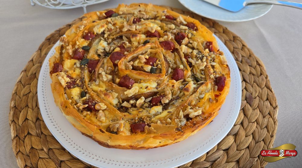 • Potencia el crujiente: Puedes añadir semillas de sésamo o amapola sobre la pasta filo antes de meterla al horno para darle un toque extra de textura.